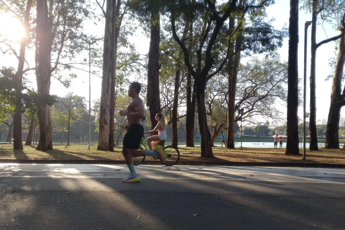 Praticantes de atividades físicas aproveitam o Parque do Ibirapuera, em São Paulo, em uma tarde ensolarada. (Foto: Instagram)