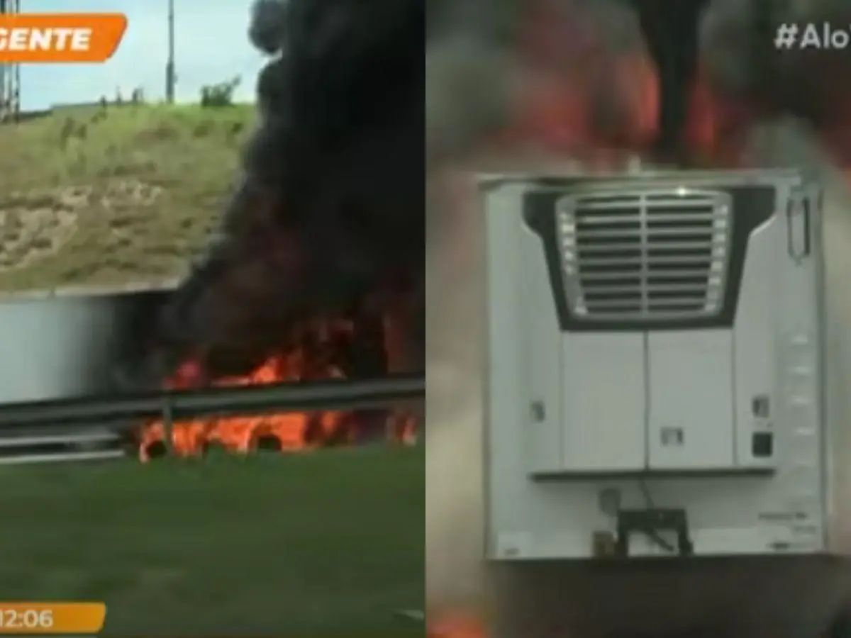 Uma carreta frigorífica que transportava alimentos explodiu após tombar no Rodoanel Mário Covas, na altura de Osasco (SP), por volta do meio-dia desta quarta-feira (3/12). O incidente começou quando o motorista percebeu fumaça na parte traseira do veículo. Ele tentou conter o princípio de incêndio com um extintor, mas as chamas se alastraram rapidamente, resultando em explosões.