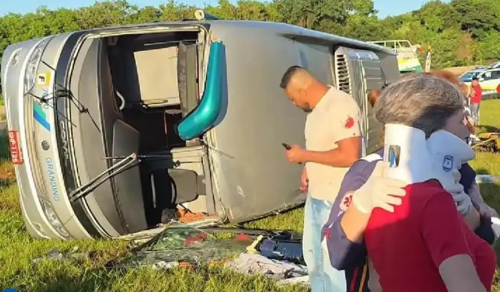 Um grave acidente ocorreu na manhã desta quarta-feira (24/12) na Rodovia Brigadeiro Faria Lima (SP-326), na entrada de Jaboticabal, interior de São Paulo. Um ônibus com 43 passageiros tombou em uma rotatória, resultando na morte de uma criança e uma mulher. Todos os outros ocupantes do veículo ficaram feridos.