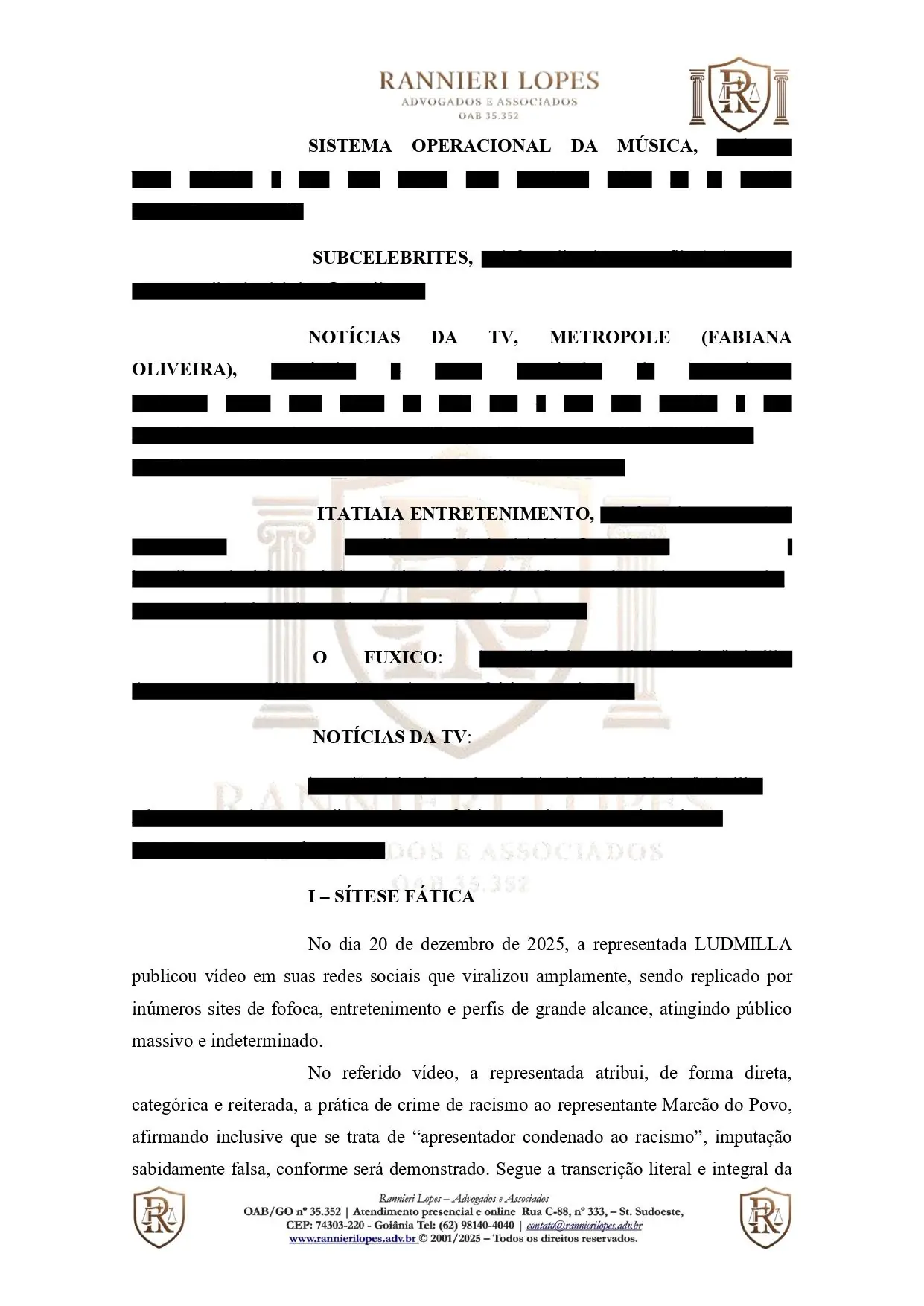 Segundo a queixa-crime, em 20 de dezembro de 2025 Ludmilla publicou o vídeo que viralizou em vários portais e atribuiu categoricamente o crime de racismo a Marcão, atingindo um público massivo e causando danos à sua imagem.