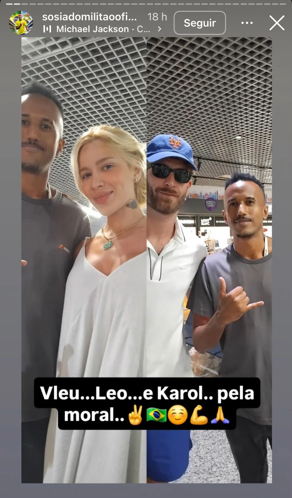 Em publicações no Instagram, Luan relatou ter esbarrado no casal no aeroporto e aproveitado para tietar. Nem Karoline nem Léo se intimidaram com a semelhança do influenciador com o zagueiro do Real Madrid e posaram para as fotos com sorrisos. O sósia ainda comentou que Léo “foi gente boa” e que Karol “nem se fala”.