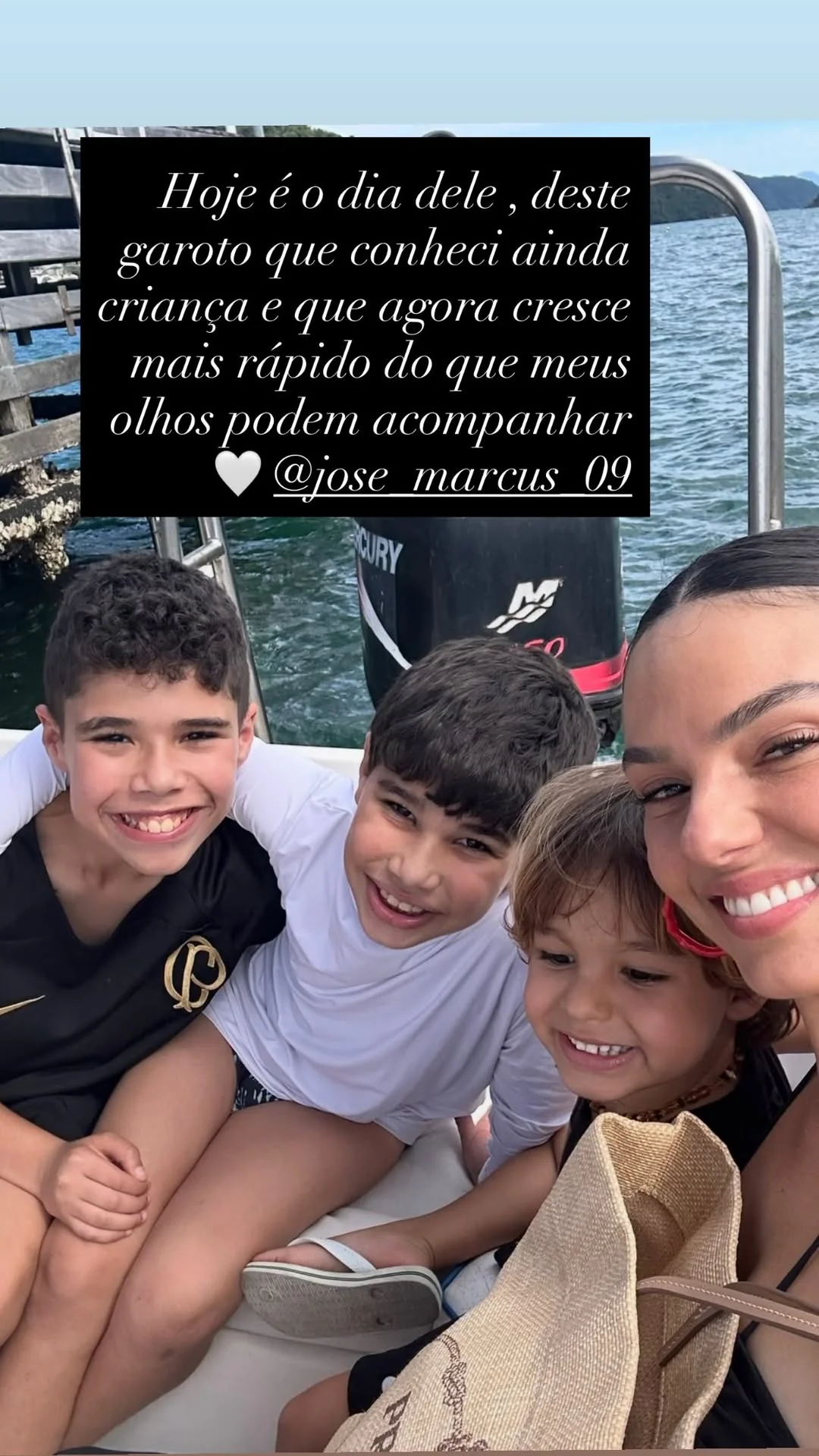 Nos stories do Instagram, a atriz postou fotos de José Marcus e destacou o quanto é gratificante acompanhar seu crescimento rápido.