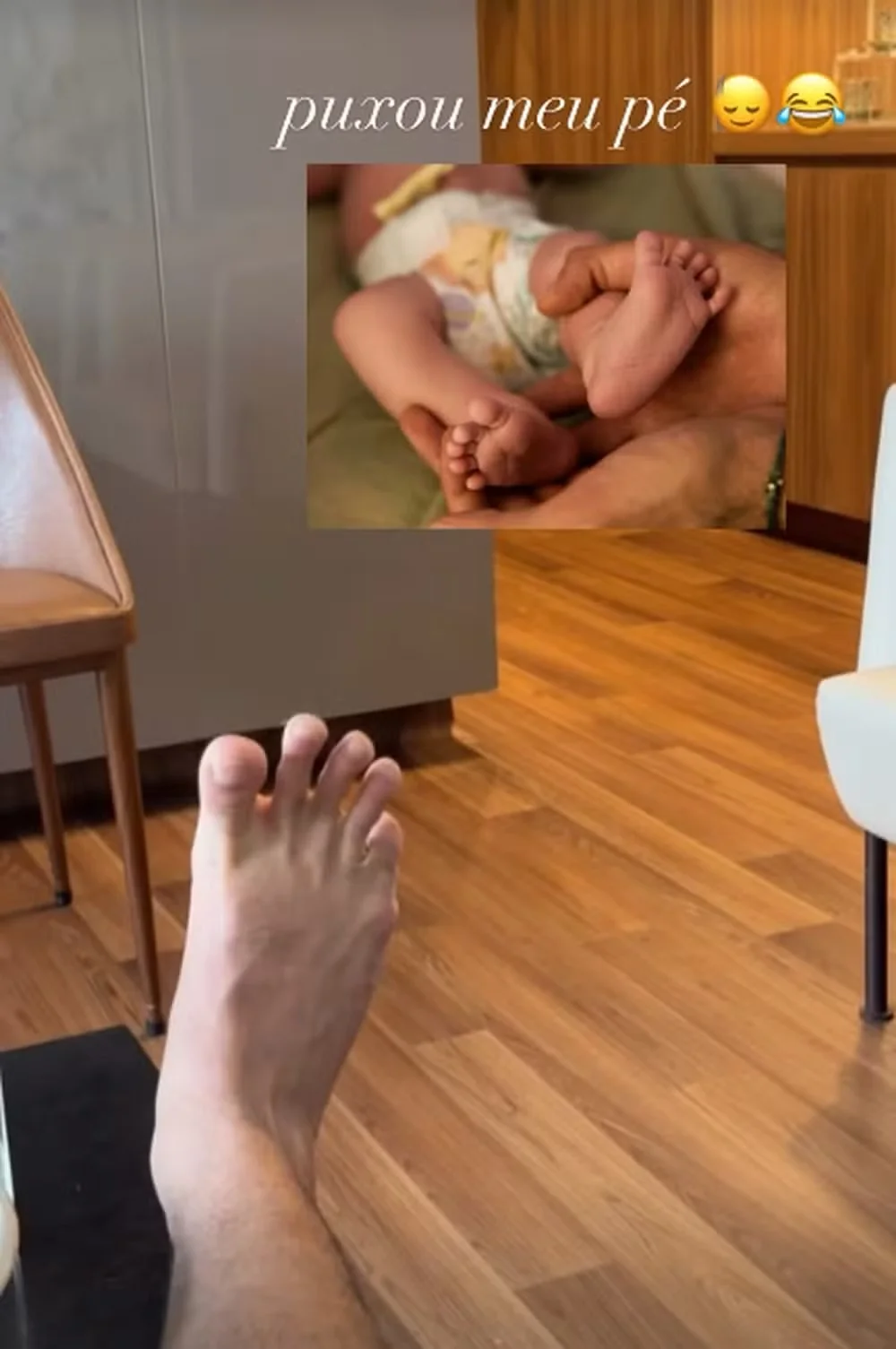 O cantor Nattan aguardou ansioso o nascimento de Zuza, sua primeira filha com Rafa Kalimann. A bebê chegou nesta terça-feira (6/01) e, fiel ao seu bom humor, o sertanejo logo brincou sobre o recém-nascido: “Puxou meu pé”, registrou nos Stories do Instagram.