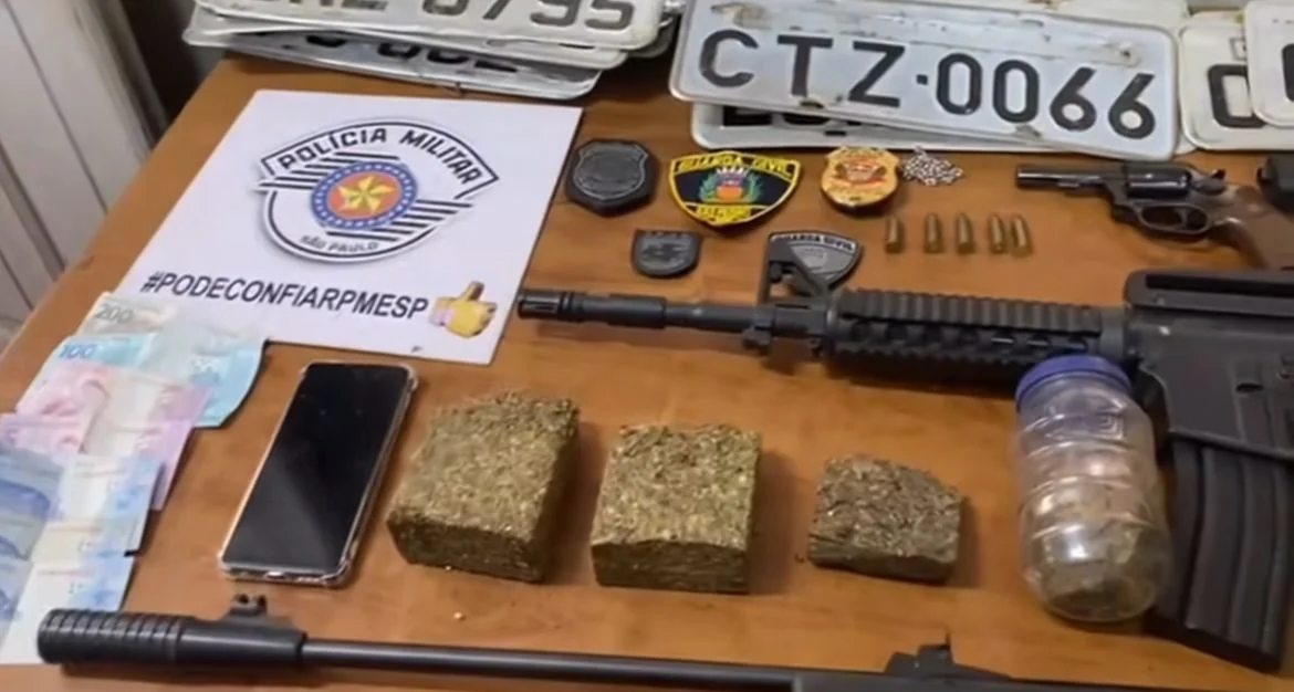 Na ação policial, foram apreendidos diversos tijolos de maconha, um revólver, simulacros, uma espingarda de pressão, quantia em dinheiro, o celular do acusado e outros objetos. O MP pediu ainda autorização judicial para analisar o conteúdo do aparelho.