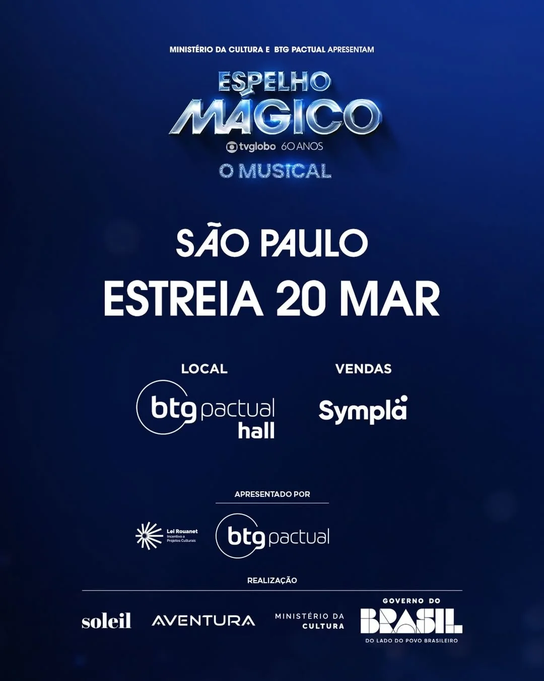 Em 2025, a TV Globo celebrou seis décadas desde sua fundação, marcadas por inúmeras transformações na televisão brasileira e por uma presença constante na rotina das famílias. Para homenagear essa trajetória, a emissora já realizou 60 horas de programação especial e realizou um grande show comemorativo. Agora, esse sentimento de celebração será levado ao teatro em um projeto inédito. Intitulado “Espelho Mágico – TV Globo 60 Anos – O Musical”, o espetáculo estreia em São Paulo em março e, em seguida, será apresentado no Rio de Janeiro em maio.