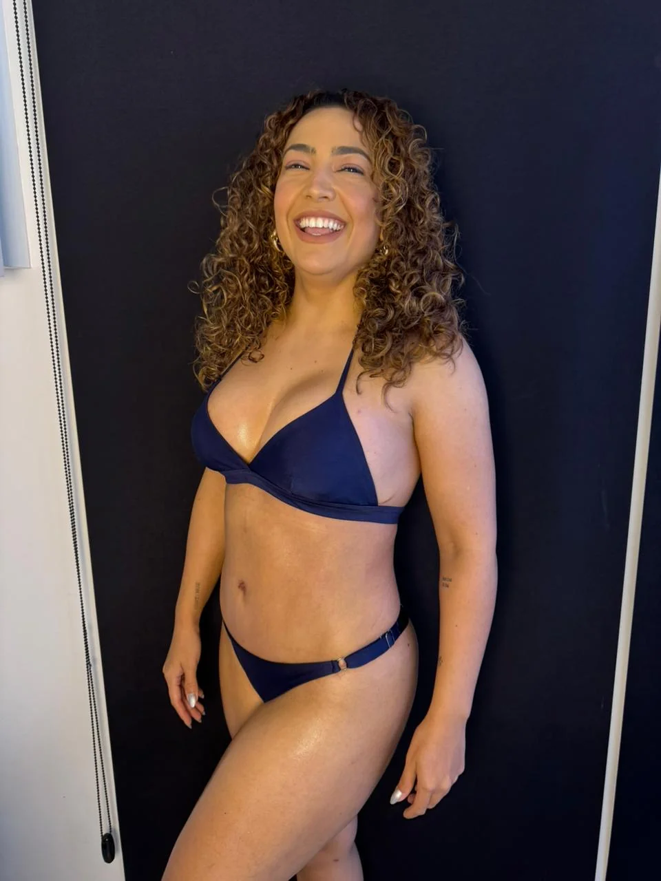 Para Camila Moura, colocar o biquíni e admirar seu novo corpo foi uma experiência reveladora. “Vestir um biquíni e ver o meu novo corpo é incrível. Durante a recuperação, usei quase todo o tempo uma cinta modeladora, então perceber essa silhueta diferente no espelho me encheu de gratidão”, afirmou a ex-peoa da Record.