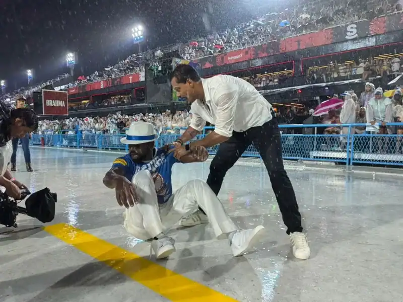 O público que esteve nos ensaios técnicos na Marquês de Sapucaí no último domingo (8/2) presenciou uma sequência digna de superprodução. Viaturas em alta velocidade, homens simulando perseguição e o ator Marcello Melo Jr. em destaque no meio da confusão chamaram a atenção dos foliões e se espalharam rapidamente pelas redes sociais. A grandiosidade das cenas fez muita gente questionar de onde vinha aquele evento cinematográfico.