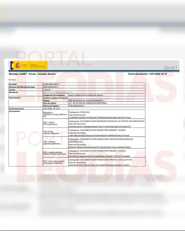 No contexto do sistema jurídico espanhol, a apresentação de uma denúncia formal é o passo inicial para que se abra um inquérito preliminar. Esse procedimento costuma envolver coleta de depoimentos, análise de provas documentais e, eventualmente, reconhecimento de fotografias ou imagens. Caso o juiz responsável considere que há indícios suficientes, a denúncia evolui para uma ação penal, com possibilidade de audiência de instrução e julgamento.
