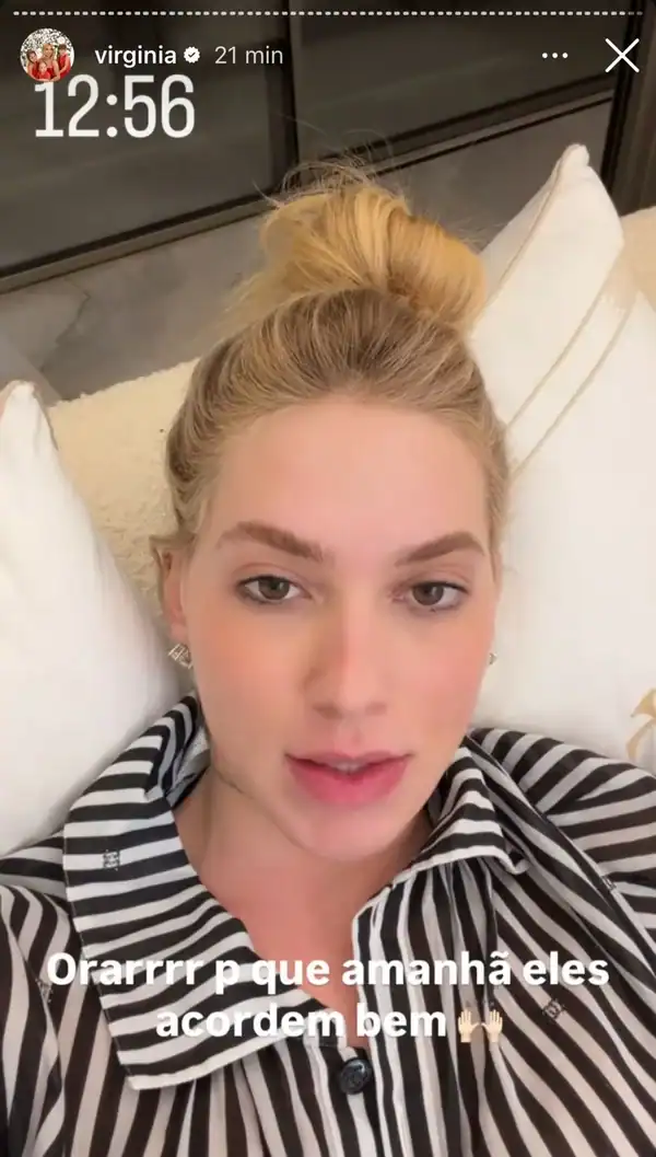 Virginia Fonseca registrou nesta terça-feira (9/3) um momento em que conversava e maquiava a filha do meio, Maria Flor. A influenciadora aplicou blush, rímel e batom na menina, que prontamente declarou querer apenas a mãe para essa tarefa. A repercussão ocorreu um dia depois de um vídeo mostrar Ana Castela, ex-namorada de Zé Felipe, pintando o rosto da criança.