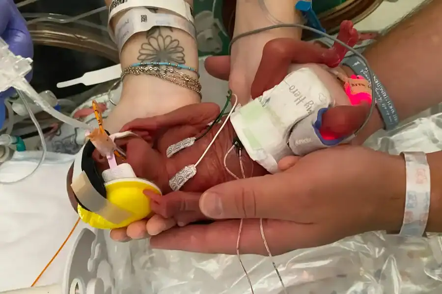 Caroline, professora de educação infantil de 27 anos, enfrentou uma gravidez marcada por riscos desde as primeiras semanas. Com 22 semanas de gestação, foi diagnosticada com um hematoma subcoriônico, condição que prejudicou a fixação da placenta. Cinco dias depois, entrou em trabalho de parto e precisou passar por uma cesariana de emergência em um hospital no Tennessee.
