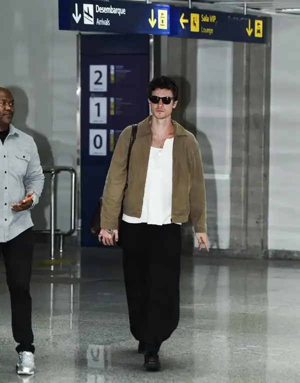 Shawn chegou ao Rio de Janeiro nesta terça-feira (24/3) para acompanhar Bruna Marquezine durante a semana de estreia do novo filme dela, “Velhos Bandidos”, que conta também com Fernanda Montenegro e Lázaro Ramos no elenco. O cantor foi visto desembarcando no aeroporto e acenou sorrindo para os fãs que o aguardavam no local.