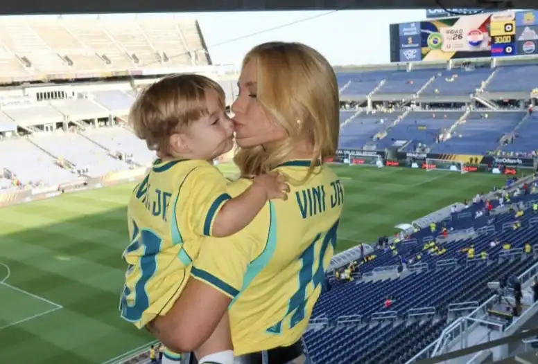 “Já estamos prontos, vai Brasil! Primeiro jogo do Brasil no estádio com meus amores”, escreveu Virginia ao publicar um carrossel de fotos ao lado dos filhos.