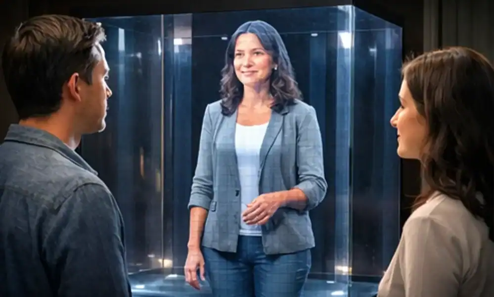 A integração entre inteligência artificial e projeções tridimensionais tende a ampliar a sensação de presença, ao permitir que essas representações ocupem o ambiente e interajam de forma mais dinâmica.
