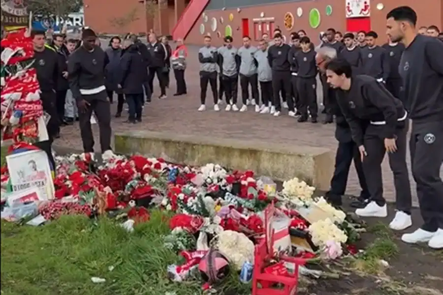 Nesta segunda-feira (13/4), a delegação do PSG realizou um gesto de respeito e solidariedade ao chegar em Liverpool. Eles foram até Anfield Road para homenagear os irmãos Diogo Jota e André Silva, que faleceram em um acidente de carro em julho. Além disso, prestaram tributo às vítimas do desastre de Hillsborough, ocorrido em 1989.