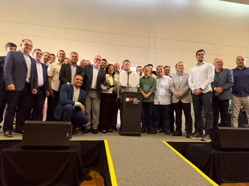 A ação ocorreu durante um almoço institucional com a presença de Tarcísio, no qual o prefeito usou a tribuna para representar os demais gestores e formalizar o posicionamento conjunto da região.