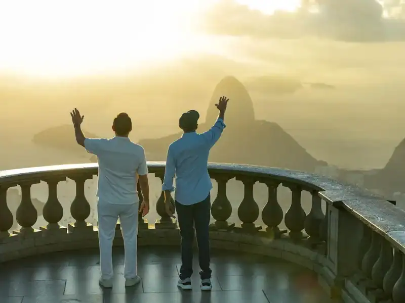 Mano Walter e Fagner se encontraram nesta quinta-feira (16/4) para a gravação do clipe “Sem Deus É Ruim”. O local escolhido para a produção foi o amanhecer no Santuário do Cristo Redentor, no Rio de Janeiro. Para os artistas, a vista única da capital fluminense contribui para reforçar a mensagem de fé, tempo e propósito presente na música.