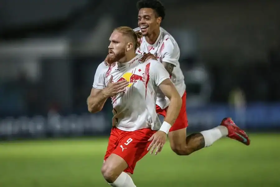 Isidro Pitta comemora o gol da virada do Red Bull Bragantino sobre o Blooming na Sul-Americana. (Foto: Instagram)