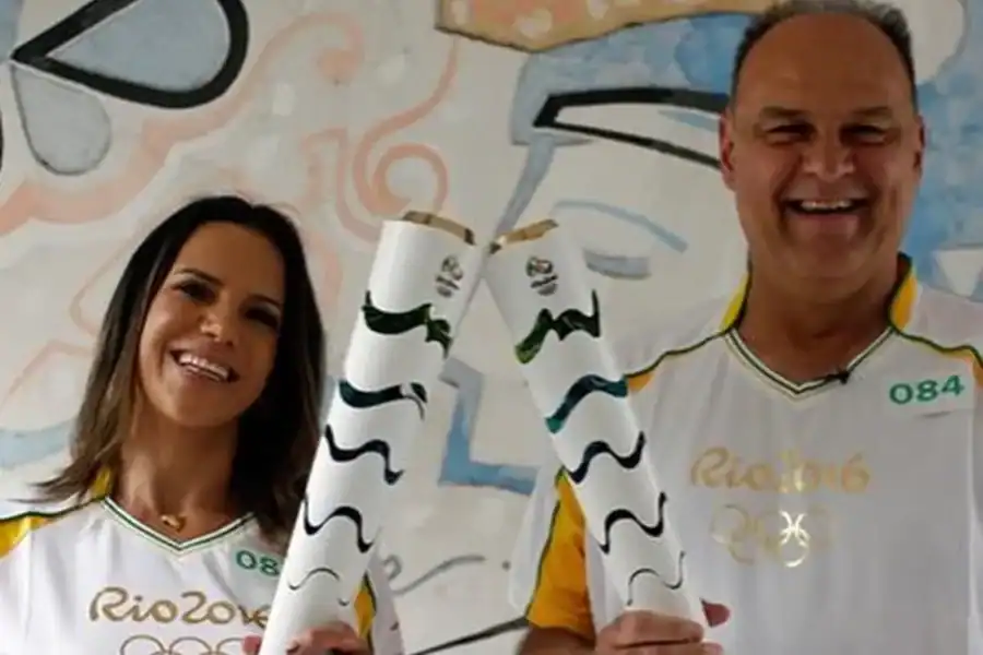 Virna e Oscar Schmidt seguram a tocha olímpica durante o revezamento do Rio-2016. (Foto: Instagram)