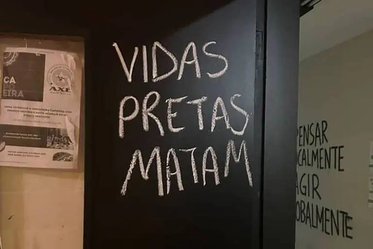 Frases com teor racista foram pichadas na sede do Diretório Central dos Estudantes (DCE) e em centros acadêmicos do Campus São Paulo da Universidade Federal de São Paulo (Unifesp), localizado na Vila Clementino, zona sul da capital paulista. A expressão “Vidas pretas matam” foi registrada em diferentes pontos da universidade, gerando forte repúdio por parte das autoridades acadêmicas.