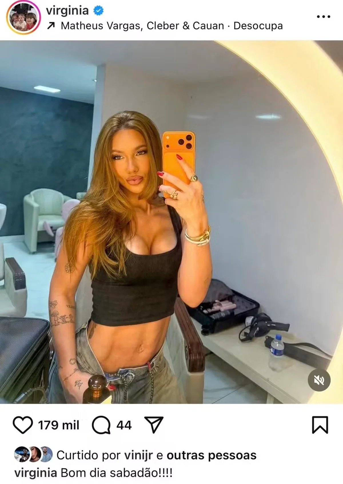 Na gravação, feita dentro de um carro, Virginia aparece tirando várias fotos de si mesma, o que gerou risadas de quem a filmava, que comentou: “Mil horas para uma selfie”. Em determinado ponto, é possível ver que ela escolhe uma das imagens e a envia para alguém com nome que lembra “Vini”, o que aumentou ainda mais as especulações sobre uma possível reconciliação.
