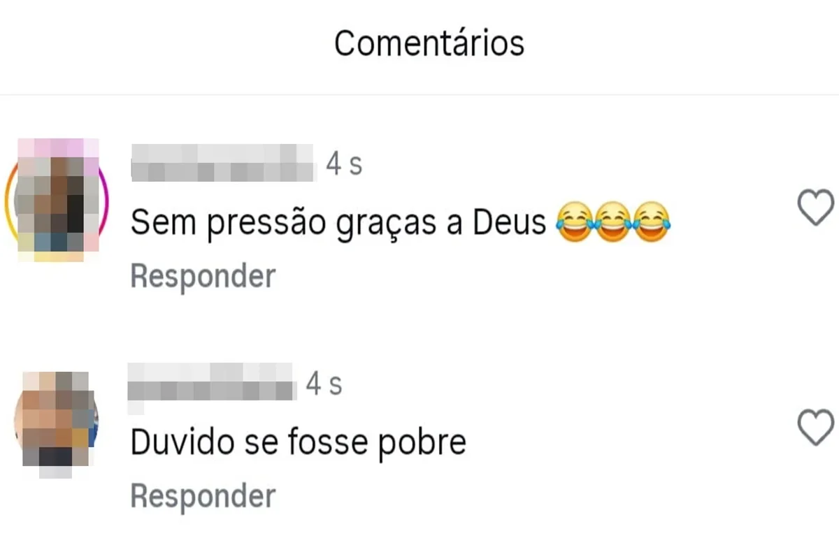 Logo após o anúncio, não faltaram piadas. Comentários como “Sem pressão, graças a Deus” e “Ai, que breguice” dominaram as publicações. Outros usuários ironizaram dizendo que “tem gente que não cansa de testar a paciência de Deus” e até apostaram que o relacionamento não irá durar.