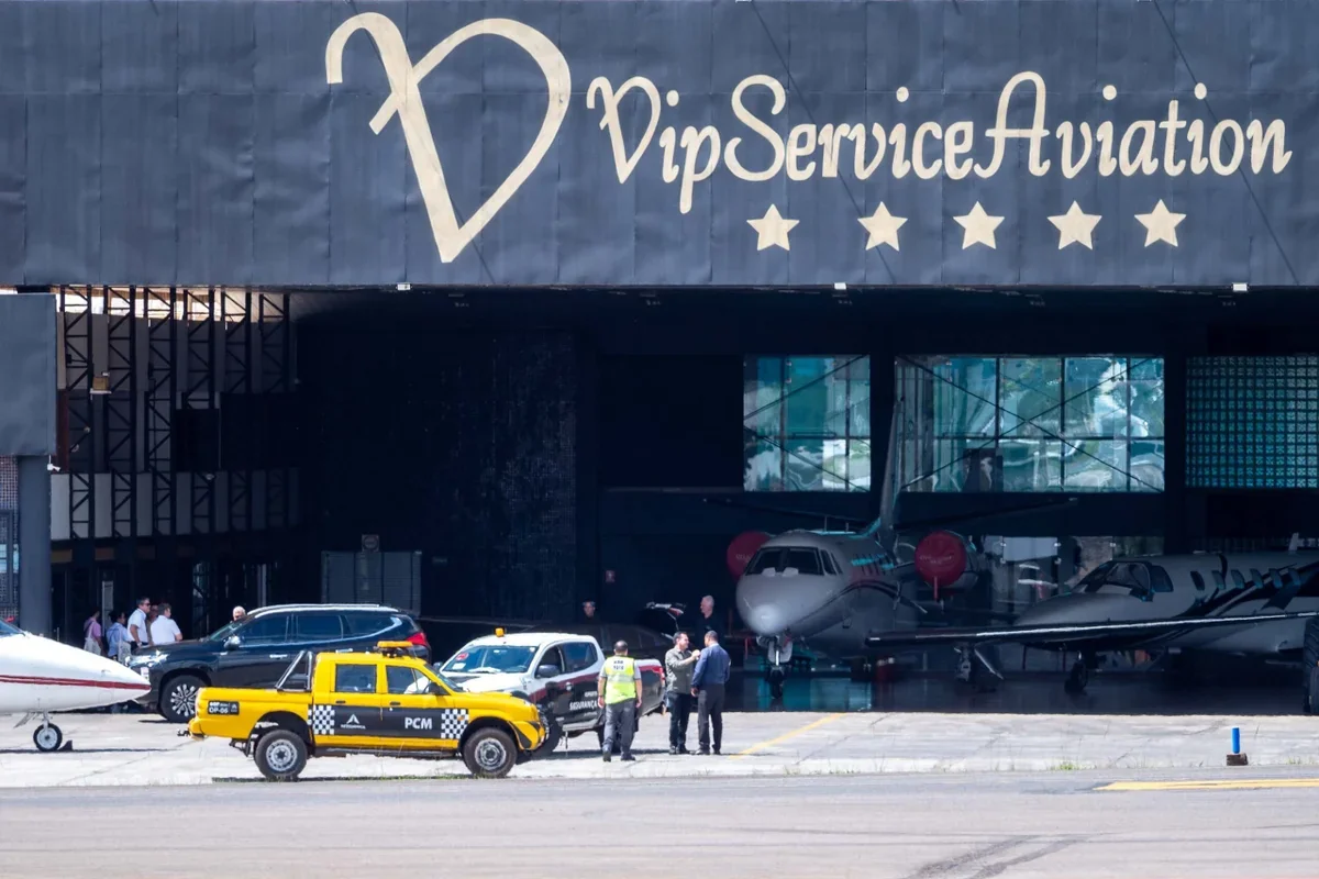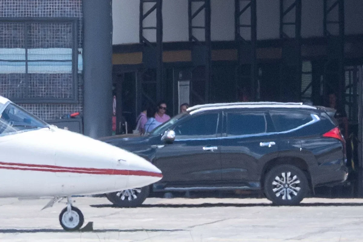 Michelle desembarcou no hangar da Vip Service Aviation, onde foi registrada por fotógrafos. Nas imagens, também é possível ver a presença da vice-governadora do Distrito Federal, Celina Leão (PP), no local.