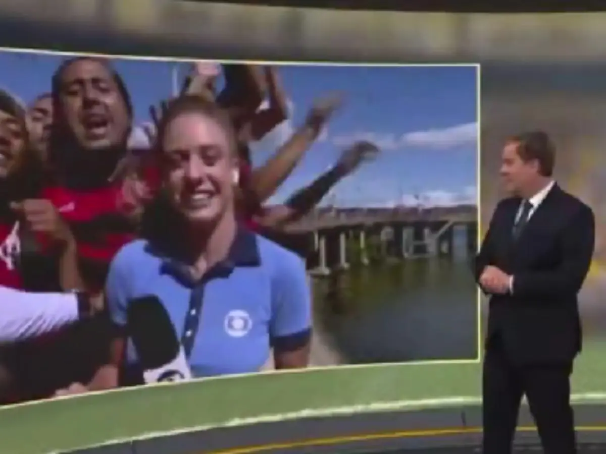 A repórter esportiva Duda Dalponte, da TV Globo e do SporTV, foi agredida ao vivo durante uma entrada no “Jornal Hoje”, nesta quarta-feira (26/11), enquanto cobria a movimentação da torcida do Flamengo em Lima, no Peru, às vésperas da final da Copa Libertadores contra o Palmeiras.