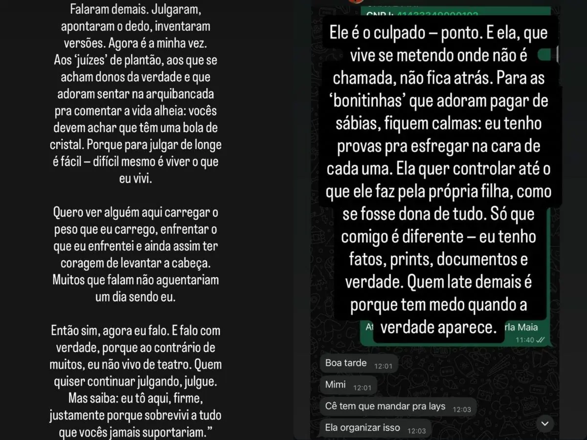 Ketellen também atacou diretamente Lays, acusando-a de interferir nas decisões relacionadas à filha que tem com Diego. Segundo ela, Lays tenta controlar até mesmo o que o cantor faz em relação à criança. “Ela quer controlar até o que ele faz pela própria filha, como se fosse dona de tudo”, afirmou.