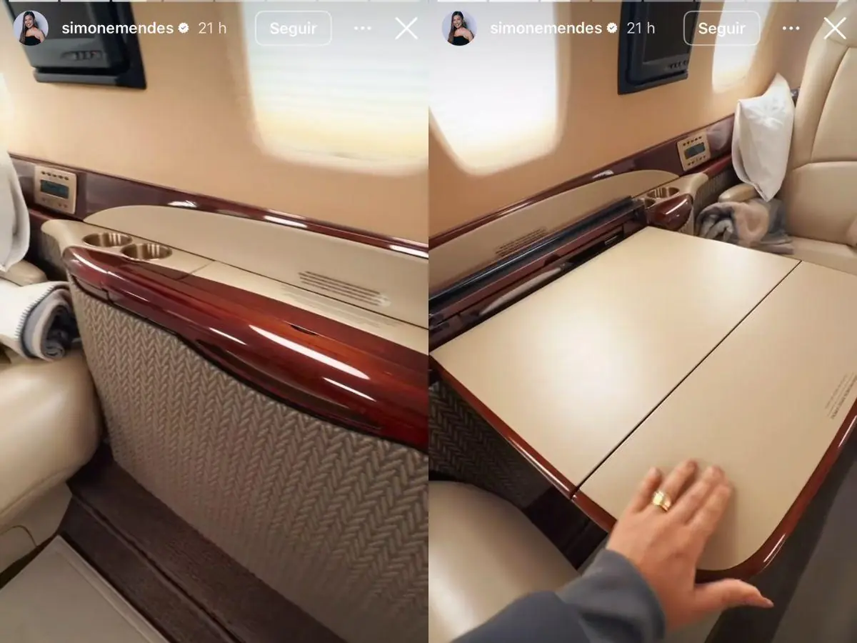 Nos stories do Instagram, Simone mostrou o interior atual do jato e explicou as mudanças que pretende fazer, prometendo exibir o resultado final em breve. Ela realizou um tour completo pela aeronave, destacando os pontos que serão revitalizados no processo de retrofit — termo usado para modernizações em equipamentos já existentes.