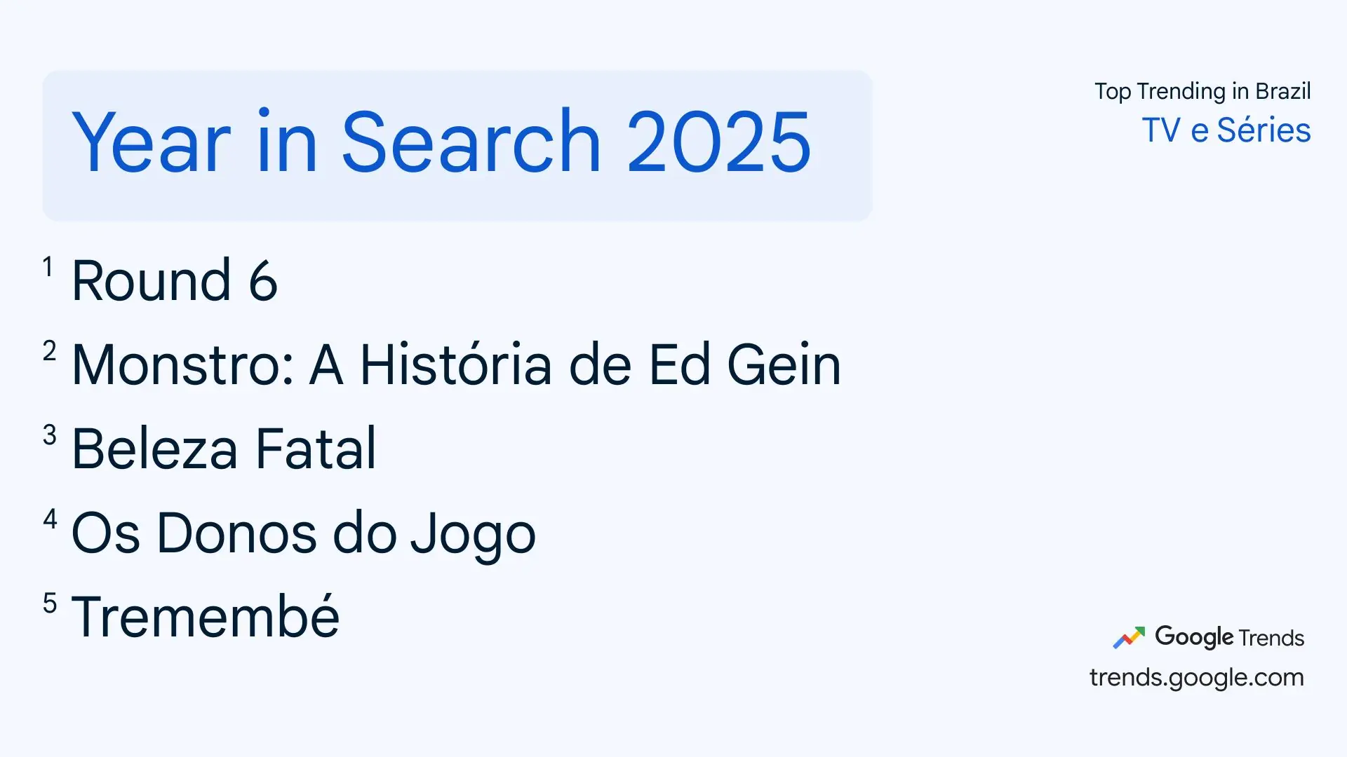 O Google divulgou seu levantamento anual “Buscas do Ano”, revelando que, em 2025, os brasileiros demonstraram um interesse crescente por novelas e séries, impulsionado por lançamentos marcantes, fenômenos internacionais e realities populares. A análise considera o aumento proporcional de buscas entre janeiro e novembro.