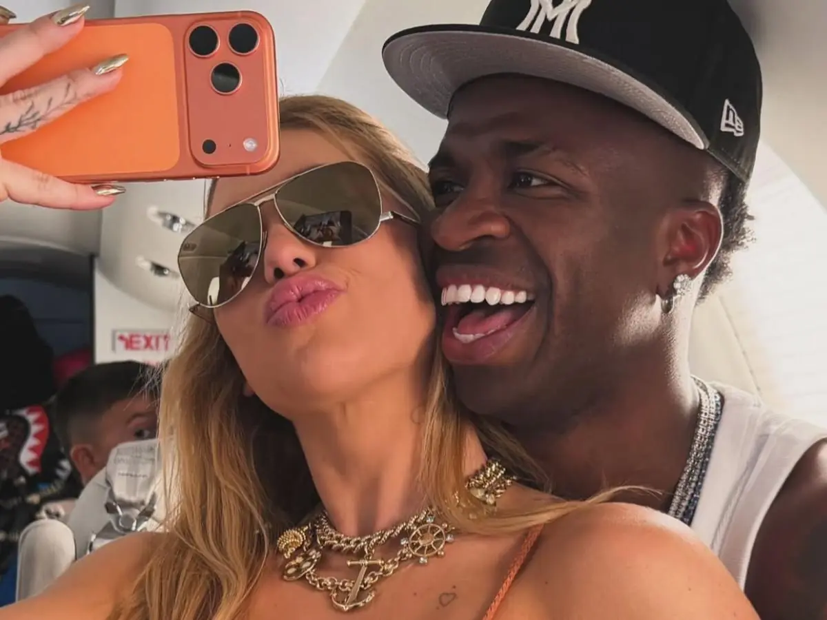 A influenciadora Virginia Fonseca deixou seus seguidores animados ao compartilhar, nesta sexta-feira (26/12), registros de um dia romântico ao lado do craque do Real Madrid, Vinícius Júnior, em Trancoso (BA). Nas fotos publicadas, o casal surge com looks coordenados em tons de azul: Virginia aposta em biquíni listrado com estampa floral, enquanto Vini Jr. usa bermudão listrado. Em um dos cliques, eles trocam um beijo apaixonado, reforçando o clima de romance. A postagem já ultrapassa dois milhões de curtidas e rendeu comentários carinhosos de fãs e até emojis de coração do próprio jogador.