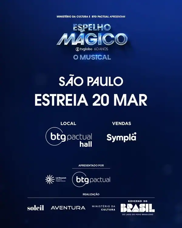 Em 2025, a TV Globo celebrou seis décadas desde sua fundação, marcadas por inúmeras transformações na televisão brasileira e por uma presença constante na rotina das famílias. Para homenagear essa trajetória, a emissora já realizou 60 horas de programação especial e realizou um grande show comemorativo. Agora, esse sentimento de celebração será levado ao teatro em um projeto inédito. Intitulado “Espelho Mágico – TV Globo 60 Anos – O Musical”, o espetáculo estreia em São Paulo em março e, em seguida, será apresentado no Rio de Janeiro em maio.
