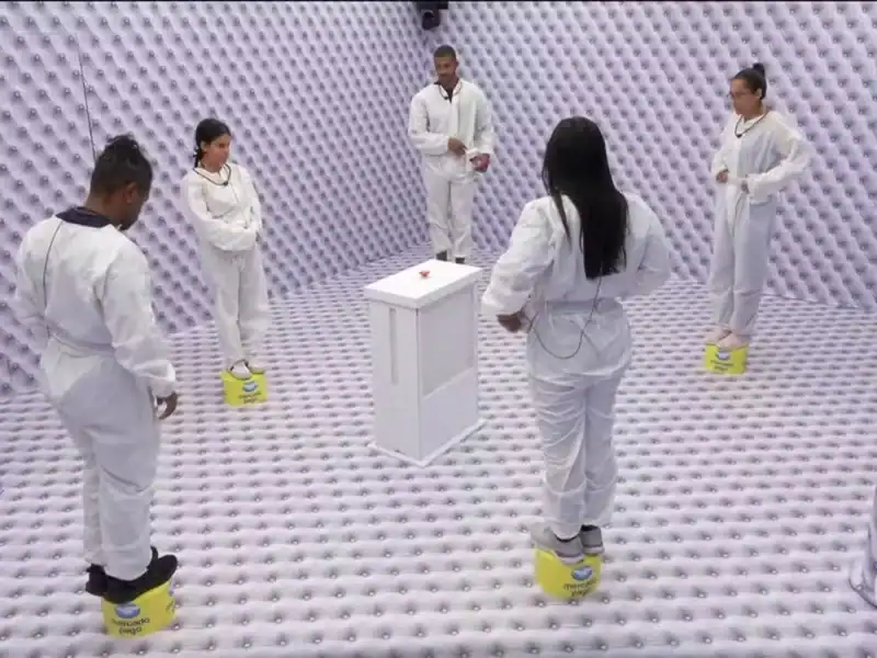 Com o prazo se esgotando e a necessidade de concluir a disputa naquele sábado, a produção recorreu a uma medida extrema: instalou cinco caixotes onde os confinados ficaram em pé, sem poder sentar, deitar ou praticar qualquer atividade. Segundo relatos internos, a decisão foi tomada em clima de desespero, com o objetivo de aumentar o desconforto até que alguém desistisse, permitindo assim o encerramento definitivo da dinâmica.