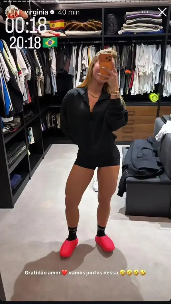 Mais cedo, Virginia Fonseca, que está em Madri, na casa de Vini Jr., divulgou um registro de um momento íntimo ao lado do jogador. Na foto, o casal aparece sentado no sofá, com as pernas próximas, enquanto Vini Jr. faz carinho em Virginia Fonseca. A legenda, minimalista, contou apenas com um emoji de coração em chamas, reforçando o clima de cumplicidade entre os dois, mesmo com a rotina intensa de viagens e jogos do atleta.
