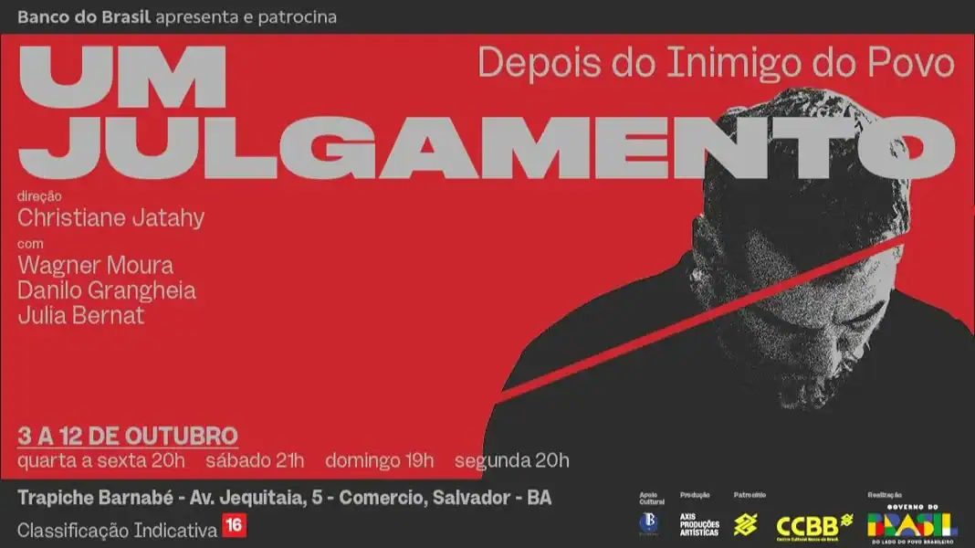 A montagem é conduzida pela cineasta Christiane Jatahy e revisita a obra clássica do norueguês Henrik Ibsen, autor de “Inimigo do Povo” (1882), considerada pioneira no drama social moderno. No espetáculo, Wagner Moura interpreta Thomas Stockmann, médico que descobre a contaminação das águas termais de sua cidade e decide alertar as autoridades e a população local. Ao se deparar com interesses econômicos e políticos, o protagonista vê seu apelo ser ignorado, enfrenta resistência e é rotulado como inimigo público, o que gera intenso debate sobre ética, poder e responsabilidade. A encenação também aposta em finais alternativos e na participação ativa da plateia, recursos que têm estimulado discussões e aplausos desde as primeiras sessões.