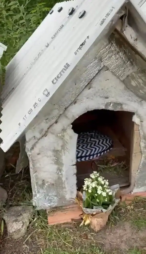 A estrutura resistente, feita com blocos de concreto e revestida por cimento, foi erguida por voluntários da região e se tornou um memorial de rua. Visitantes que passam pela Praia Brava depositam flores, bilhetes e brinquedos, criando um ponto de luto coletivo. Fotografias compartilhadas em redes sociais mostram o acúmulo de tributos coloridos ao redor da casinha, transformando o local em símbolo de repúdio à violência contra animais e de empatia pela causa.