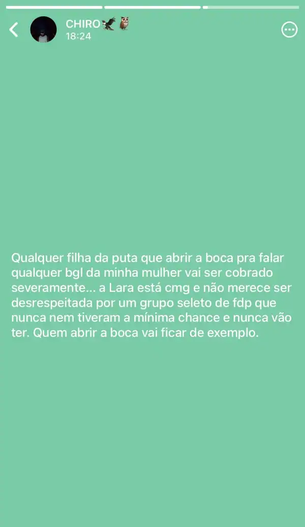 Em toque final à sua mensagem, Orochi disparou: “Qualquer filha da p* que abrir a boca para falar qualquer bagulho da minha mulher vai ser cobrado severamente… A Lara está comigo e não merece ser desrespeitada por um grupo seleto de fdp que nunca nem teve a mínima chance e nunca vai ter. Quem abrir a boca vai ficar de exemplo”. Pouco depois, Orochi deu mais um passo simbólico ao deixar de seguir MC Poze do Rodo em suas redes sociais, consolidando publicamente o afastamento e levantando dúvidas sobre a continuidade da parceria entre o funkeiro e a gravadora Mainstreet.