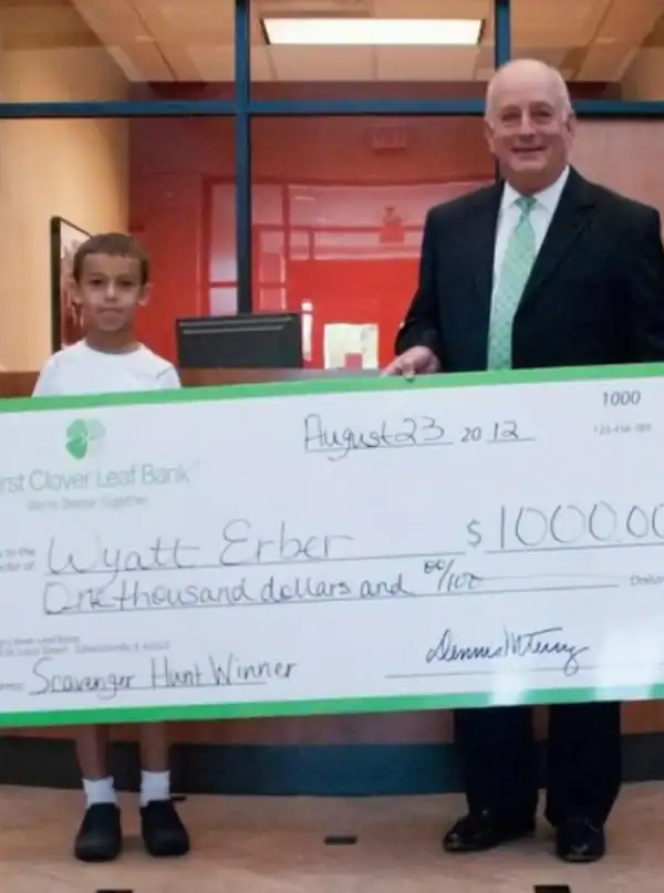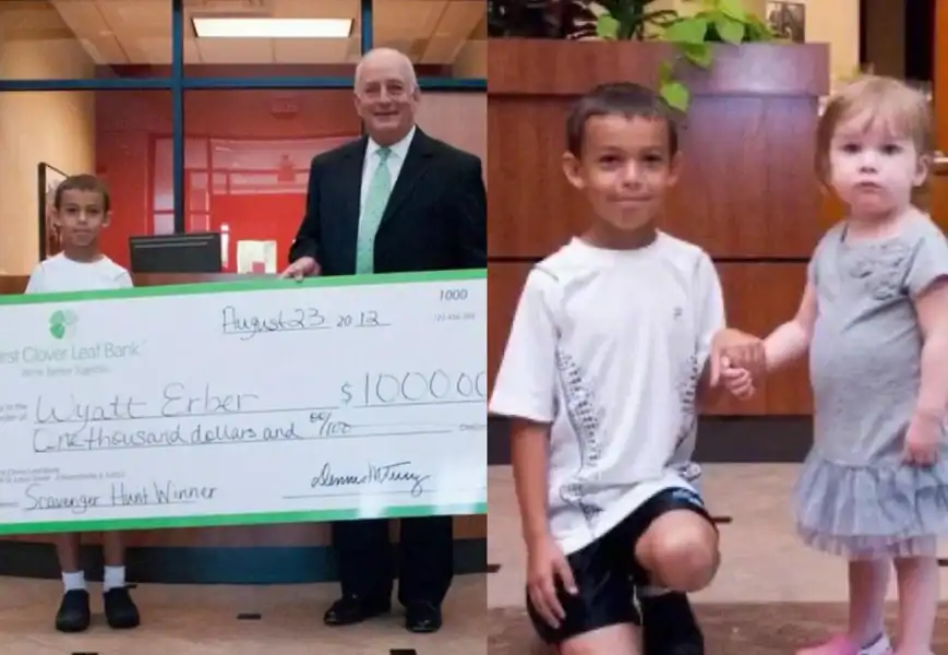 Wyatt Erber, um menino norte-americano de 8 anos, decidiu doar cerca de R$ 5 mil que havia ganhado em uma brincadeira de caça ao tesouro promovida pelo First Clover Leaf Bank para ajudar no tratamento da vizinha Cara Kielty, de 2 anos, diagnosticada com leucemia. O caso aconteceu em Illinois, nos Estados Unidos, e ganhou repercussão após a atitude do garoto.