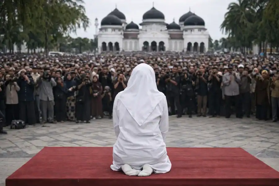 A punição ocorreu em sessão pública de flagelação, prática adotada regularmente em Aceh. A mulher, de 21 anos, recebeu os golpes aplicados por três agentes femininas, que se revezaram no uso de uma vara de rattan, tipo de bambu tradicionalmente utilizado nesses castigos.
