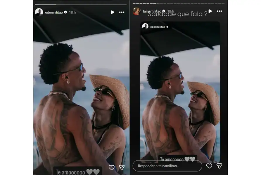 No story do Instagram, o atleta compartilhou um clique do casal com o mar ao fundo, mantendo o clima de leveza e proximidade. Após a publicação, Tainá Castro repostou o momento em seu próprio perfil, complementando com a frase “Saudade que fala”. A interação entre Éder Militão e Tainá Castro nas redes sociais acumulou visualizações e comentários de seguidores que elogiaram a demonstração de afeto pública.