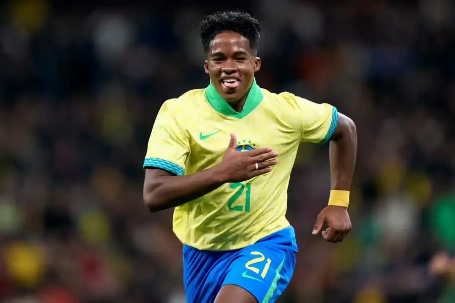 Endrick comemora o segundo gol no amistoso contra a Inglaterra, mostrando fome de bola no ataque brasileiro. (Foto: Instagram)