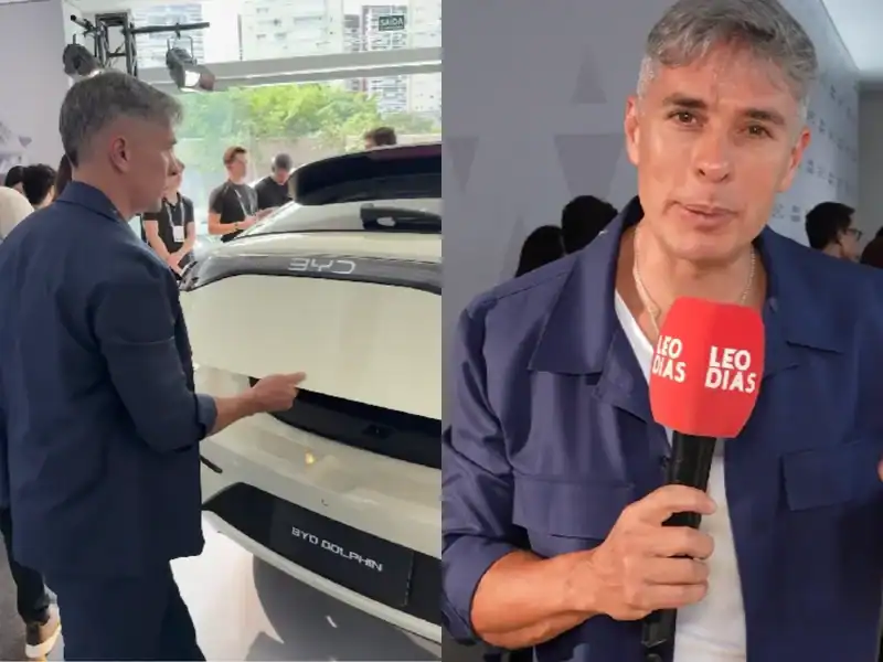 “É um carrinho elétrico que veio para agitar o mercado brasileiro! Vai mudar o jogo completamente, assim como as versões anteriores. Eu vou mostrar para vocês os detalhes desse modelo. Ele é compacto por fora, mas oferece espaço de SUV por dentro. O entre-eixos tem 2,70 metros. É espaço de carro grande em um modelo urbano”, destacou o jornalista.