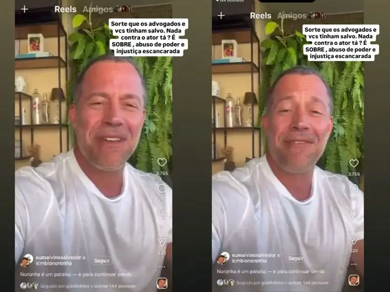 Para reforçar seu argumento e questionar a legitimidade da autuação, o humorista decidiu expor um caso muito parecido envolvendo o ator Malvino Salvador. Pelos Stories do Instagram, o empresário mostrou imagens antigas em que o ator da TV relata uma viagem em família ao arquipélago, onde sua filha aparece dando um peixinho a um pássaro.