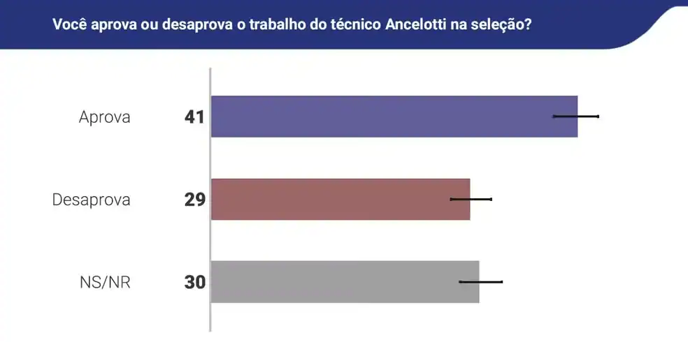 O trabalho do técnico da Seleção Brasileira também foi avaliado pela Quaest. Segundo o levantamento, 41% dos brasileiros aprovam o treinador, enquanto 29% desaprovam. Outros 30% não souberam ou não quiseram opinar.